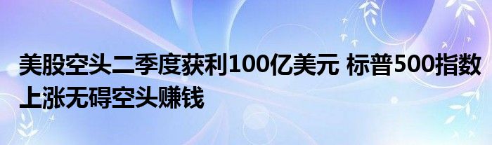 美股空头二季度获利100亿美元 标普500指数上涨无碍空头赚钱