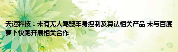 天迈科技:未有无人驾驶车身控制及算法相关产品 未与百度萝卜快跑开展相关合作