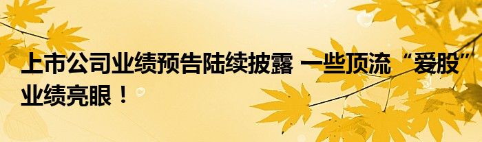 上市公司业绩预告陆续披露 一些顶流“爱股”业绩亮眼!