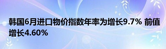 韩国6月进口物价指数年率为增长9.7% 前值增长4.60%