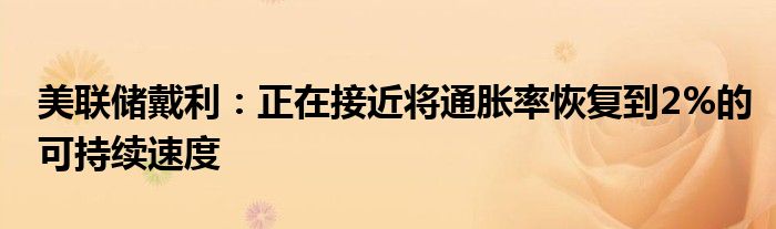 美联储戴利:正在接近将通胀率恢复到2%的可持续速度